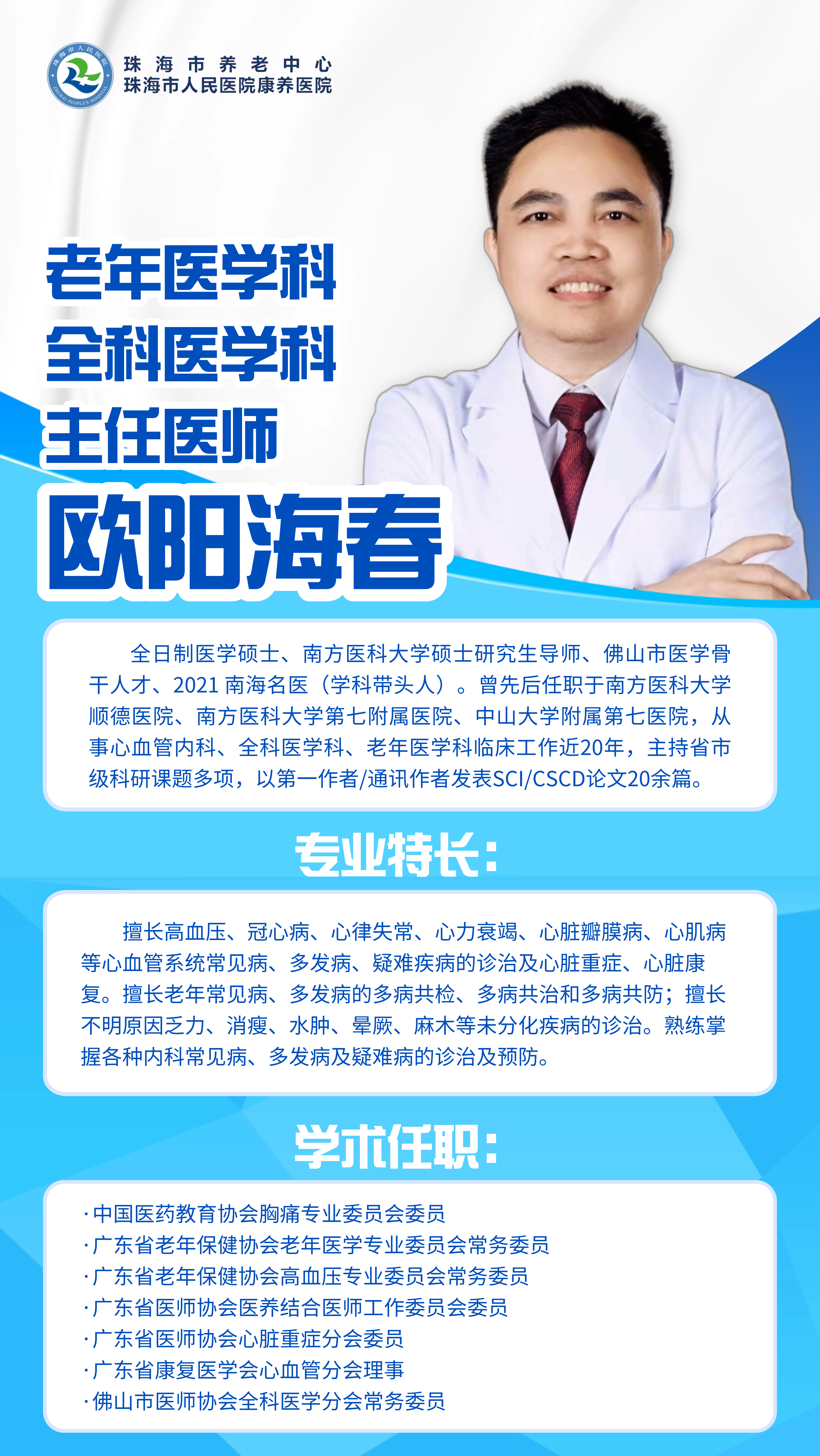 ▎珠海市人民医院康养医院名医介绍【老年医学科/全科医学科】