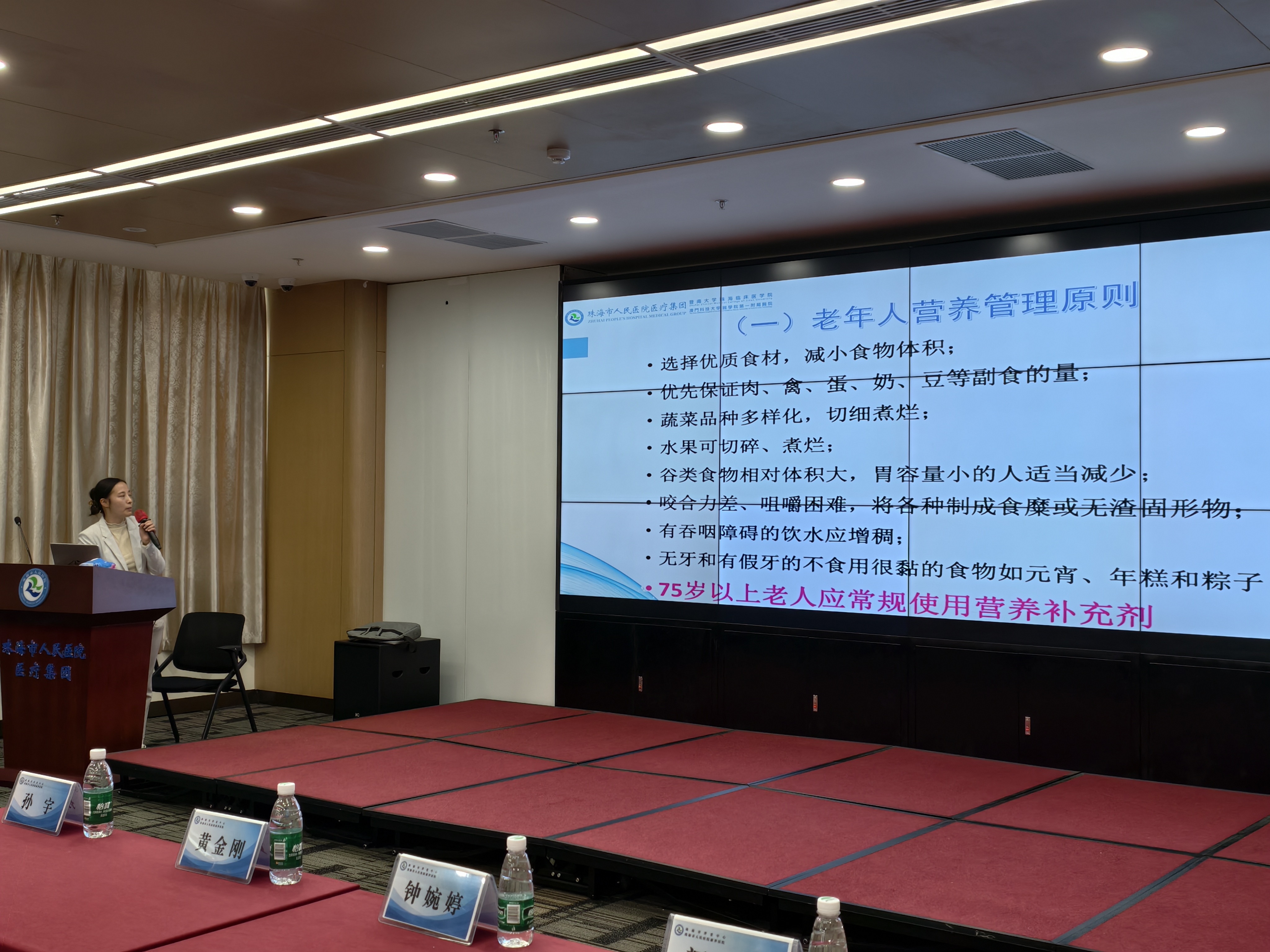 在急救技能培训结束后,第六党支部营养治疗中心的杨可医生为大家带来了一场精彩的老年人营养需求及营养管理科普讲座。尤其强调了膳食营养是保证老年人健康的基石,对于预防慢性疾病、提高生活质量具有至关重要的意义。通过制定科学的营养膳食方案,可以使老年人摄入均衡的营养,维持身体健康,提高生活质量,延缓衰老进程。