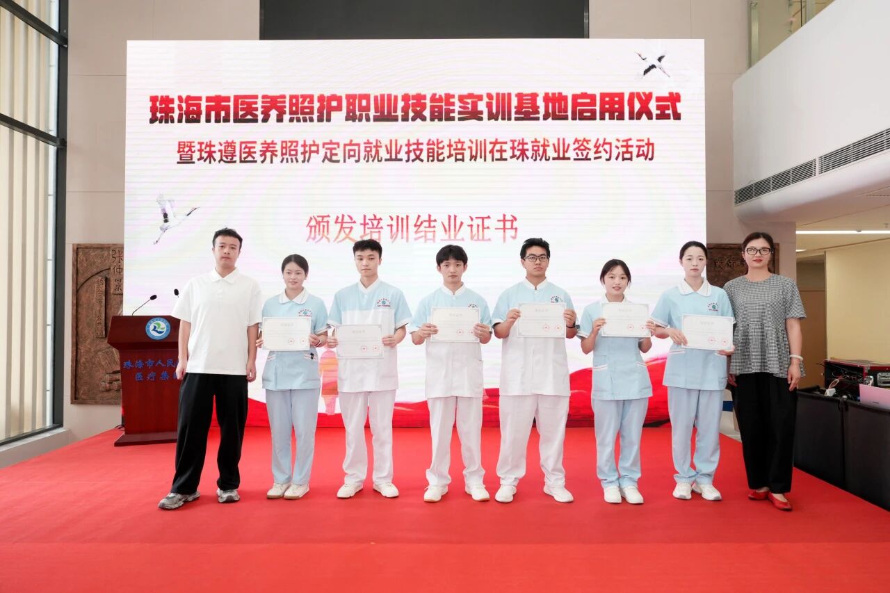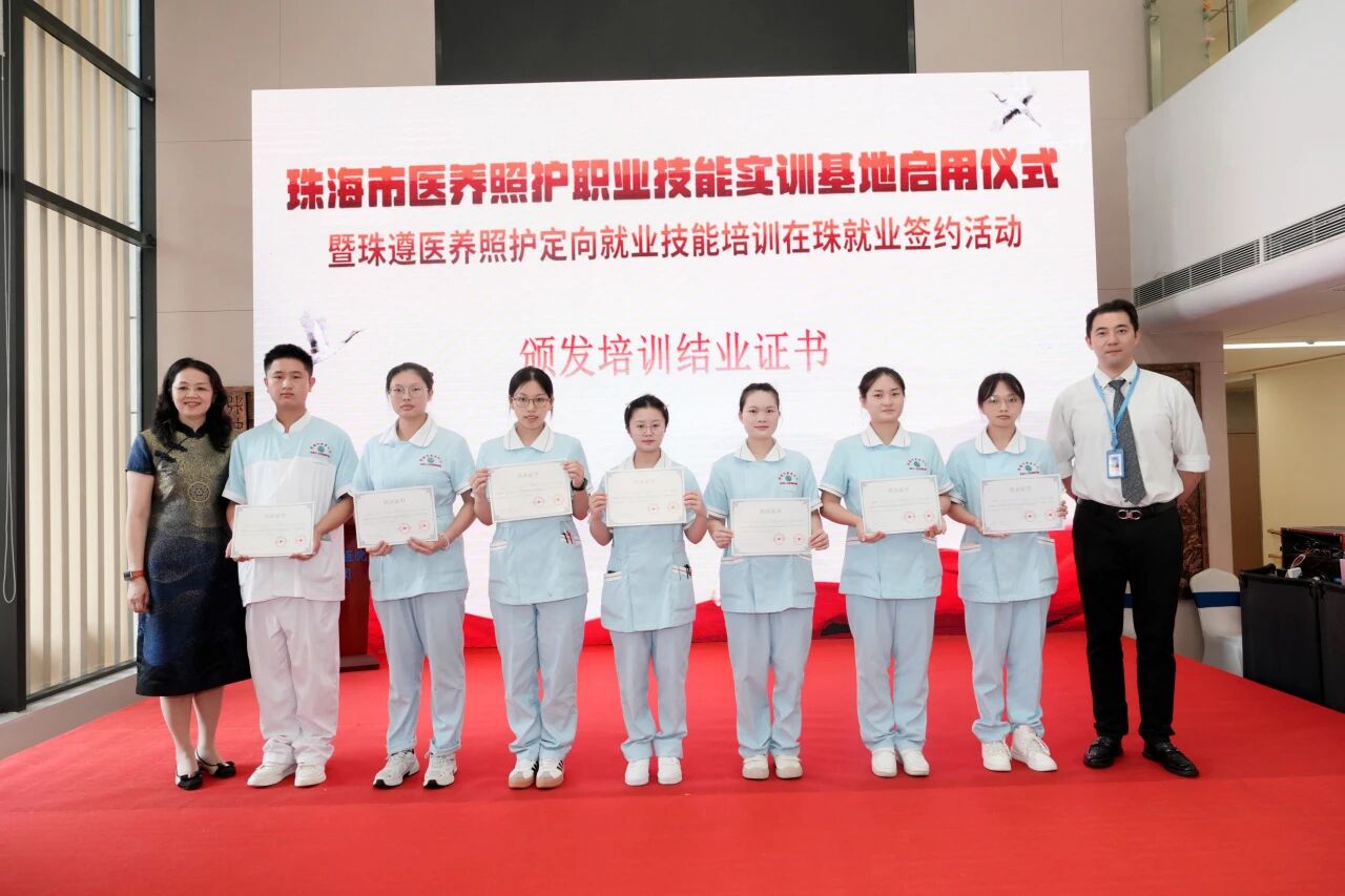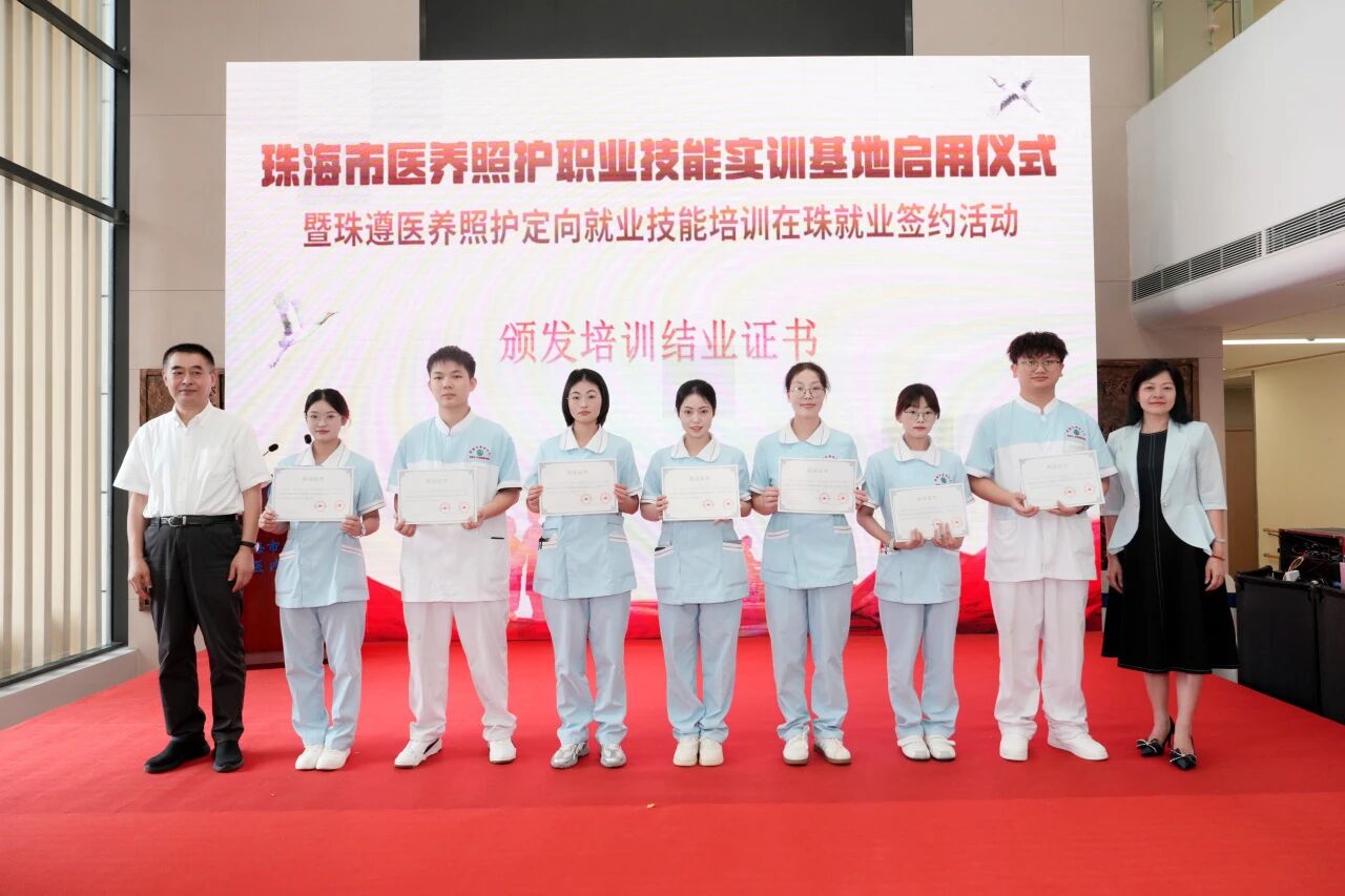 珠海市人力资源和社会保障局副局长、二级调研员徐东在致辞中表示,珠海市医养照护职业技能实训基地的正式启用,是我市加强医养照护人才培养体系建设的重要一步。基地将聚焦人才培养、技艺传承与资源整合,开展多个大健康产业工种的培训、评价、服务,为珠海乃至大湾区医养照护事业高质量发展提供人才支撑。他还肯定了珠遵协作开展定向就业技能培训的成效,欢迎更多青年人才选择珠海、共建珠海,期待基地未来建设成为有影响力的医养照护人才培育高地,为健康中国建设贡献珠海经验。